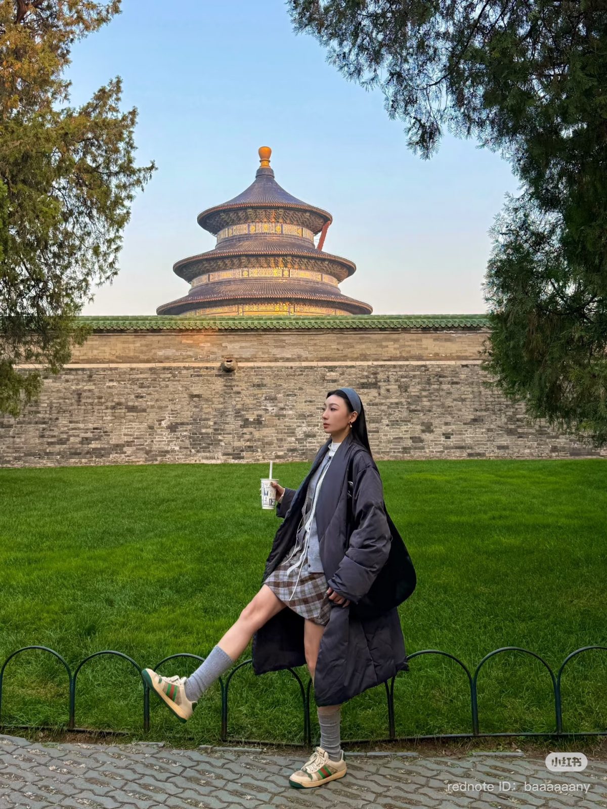 吃饱后慢步走入天坛公园,大片古树下藏着北京最松弛的片刻。祈年殿的蓝色琉璃瓦在阳光下格外好看,拍照的绝美角度不止一个;再继续走走,看看当地人打太极、遛鸟,这就是北京的日常节奏。
