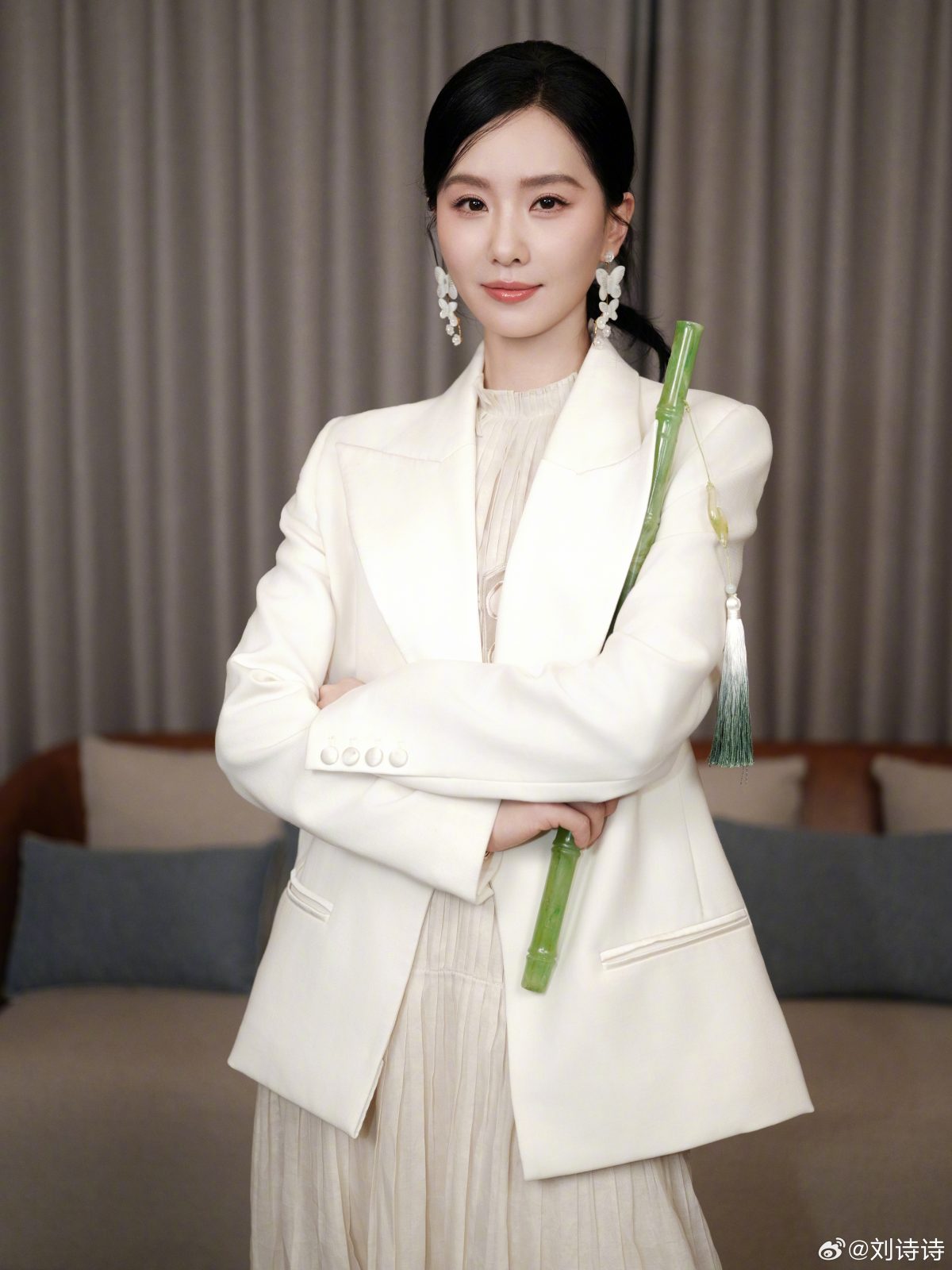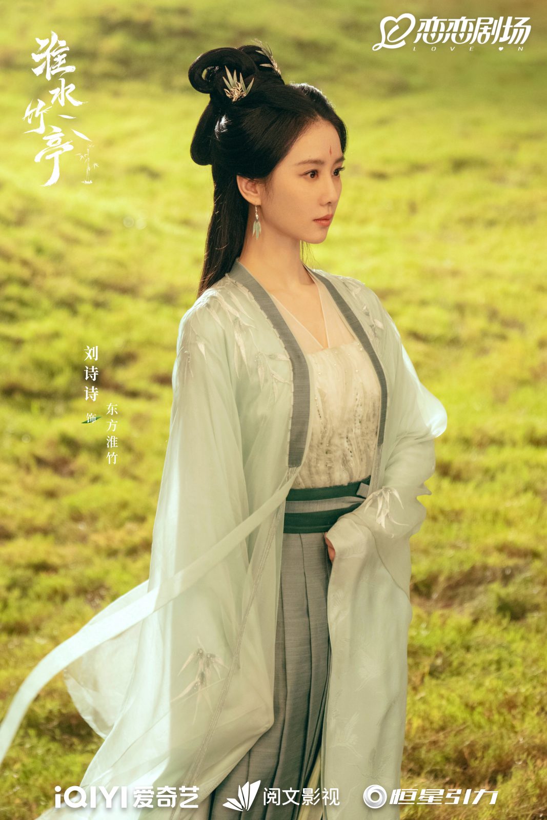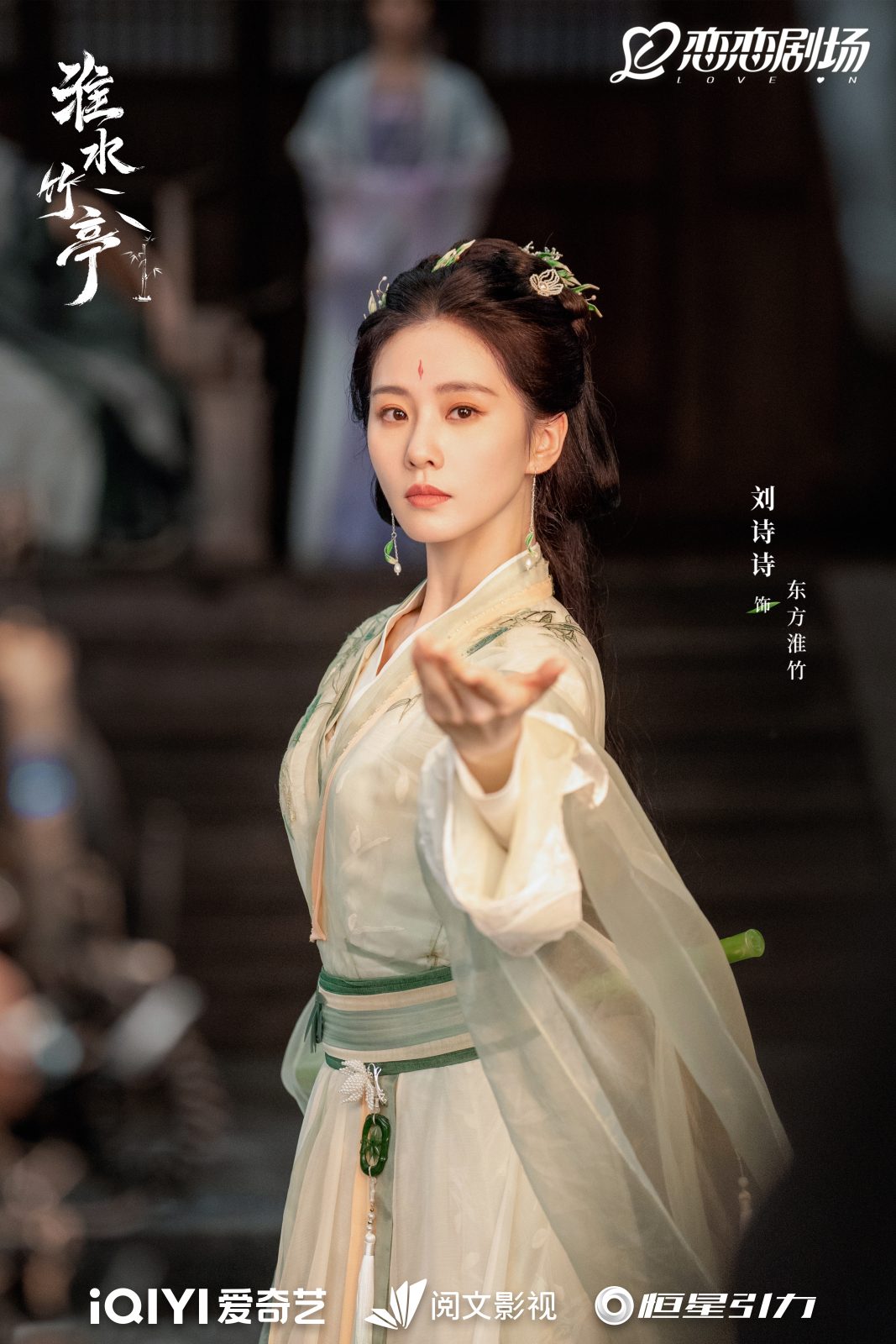 刘诗诗一出场就像从水墨中走来的女子,饰演的「东方淮竹」身着青衣,眉眼间满是坚韧与柔情,整个人透着仙气。现代造型中的她则一如既往是气质女神代表,低马尾、长风衣,干净利落。古今切换无缝衔接,仿佛从画中走下,走入现实。