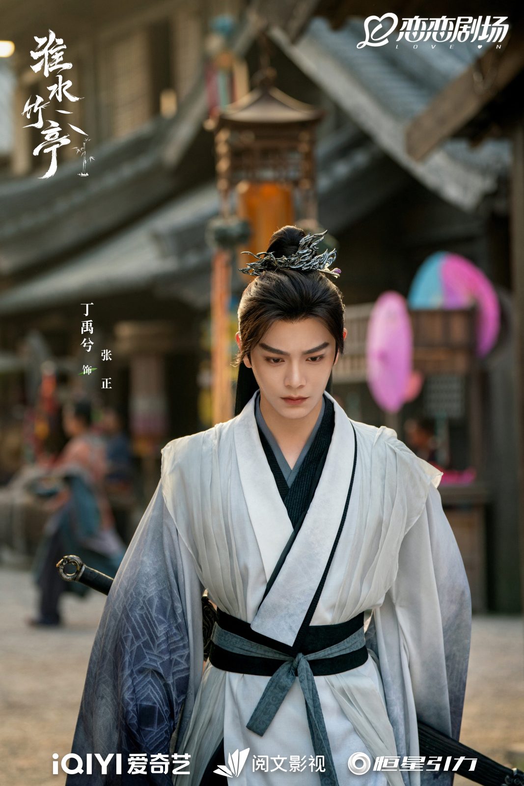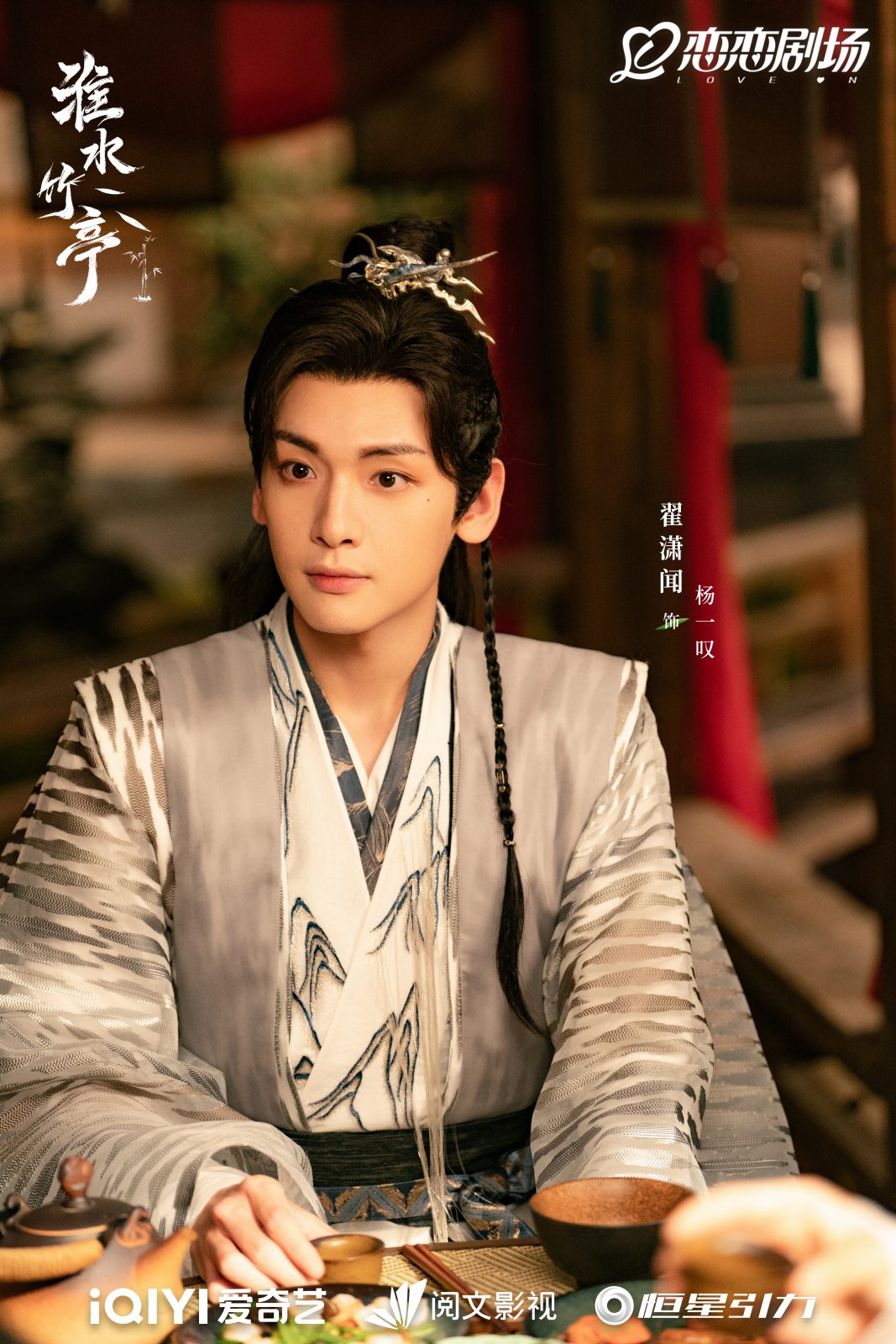 以《树下有片红房子》走红的翟潇闻,在《淮水竹亭》饰演杨一叹,是面具组织中的三识神君,出自著名的天眼杨家。翟潇闻古装造型青春气十足,像是山间少年,一派洒脱。现代装扮则完全走韩系idol路线,银发、耳钉、oversized西装,有点反差萌,清新又时髦。