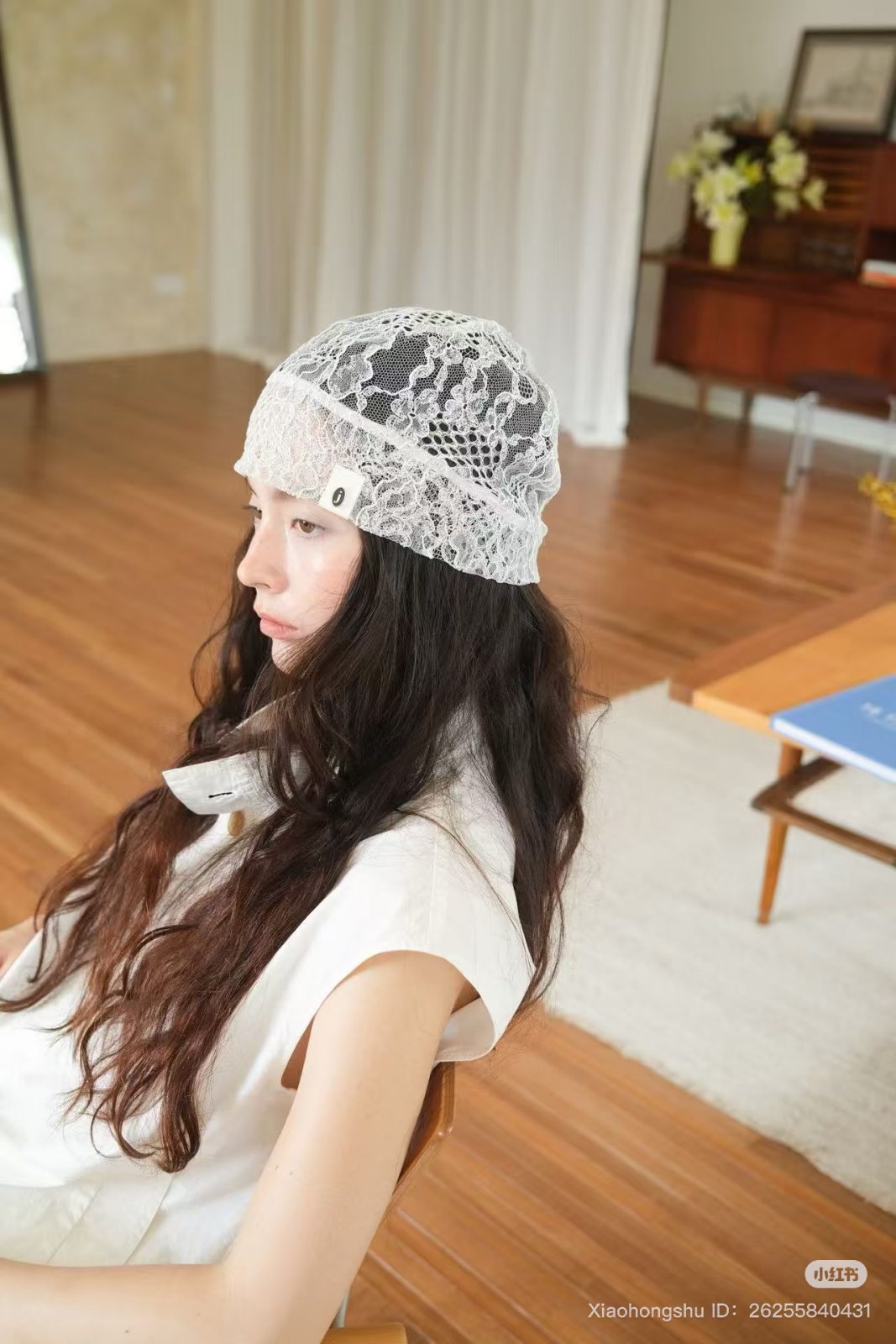 若说蕾丝帽是浪漫,那网纱蕾丝帽便是梦幻本身。轻透如烟的面料随风起舞,自带滤镜效果,连素颜时戴上都显得气质出众。白色、淡紫或奶茶色调最为热门,不仅修饰脸型,也为整体造型增添一点神秘感,是今年“云朵系女孩”必收的浪漫帽款。