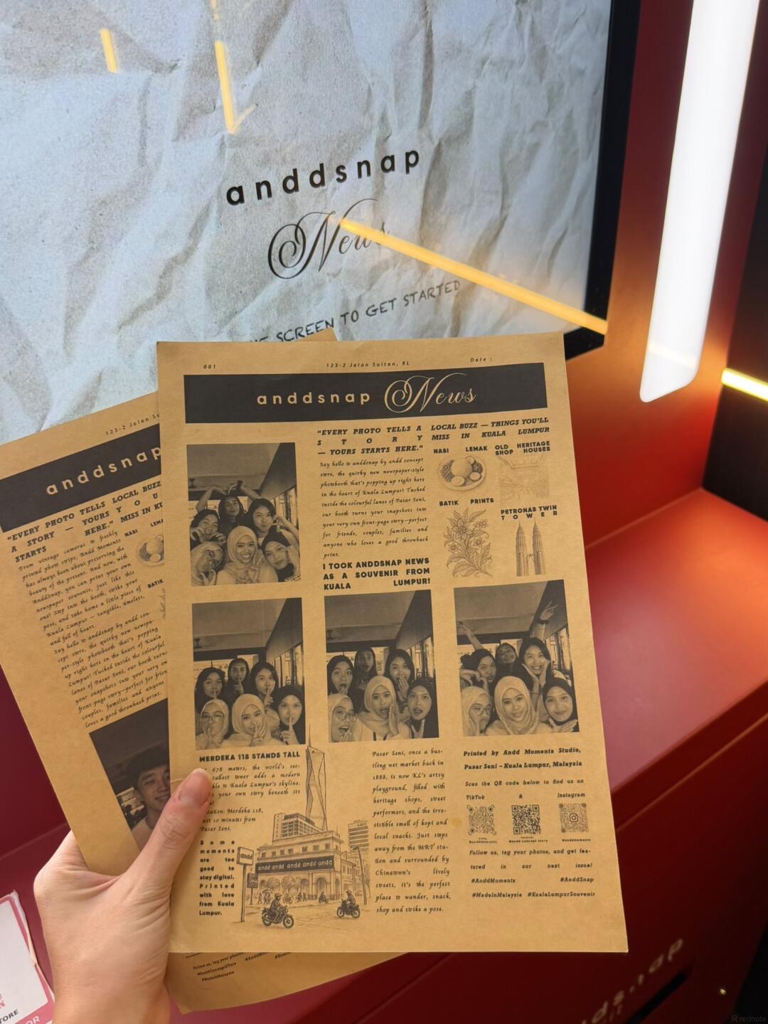 吉隆坡竟然也能拍到最近很火的 复古报纸大头贴拍出来就像旧报纸版面的设计风格,把照片变成一张专属“新闻”,复古又有点可爱,随手一拍都很有故事感。在KL city walk的时候不妨顺便体验一下这种怀旧感满满的大头贴,把旅行或日常瞬间变成一张特别的纪念照,真的很适合和朋友一起打卡